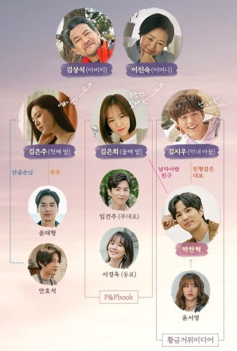 가족 안에서 늘 중재자 역할을 해온 둘째 딸. 출판사에서 일하며 현실적이고 따뜻한 시선을 지녔다. - 김지우 (신재하)